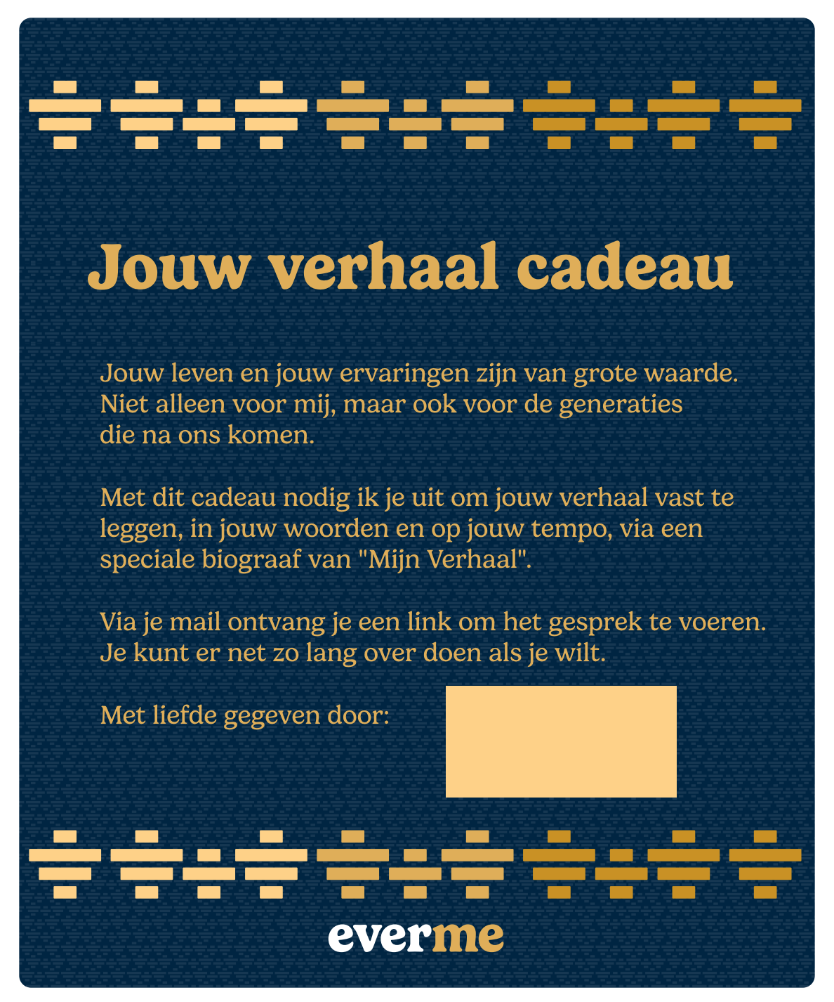 Met EverMe is het nu mogelijk om uw levensverhaal op een eenvoudige manier vast te leggen.